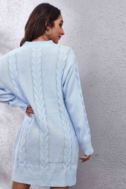Cable-Knit V-Neck Long Sleeve Mini Sweater Dress