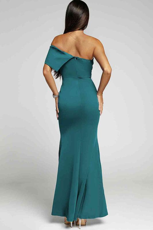 Cutout Split Flare Sleeve One-Shoulder Dress