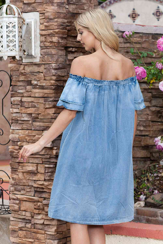 Sold outOff-Shoulder Knee-Length Denim Dress