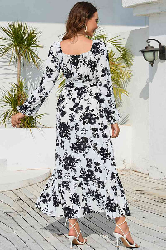 Floral Print V-Neck Long Sleeve Maxi Dress