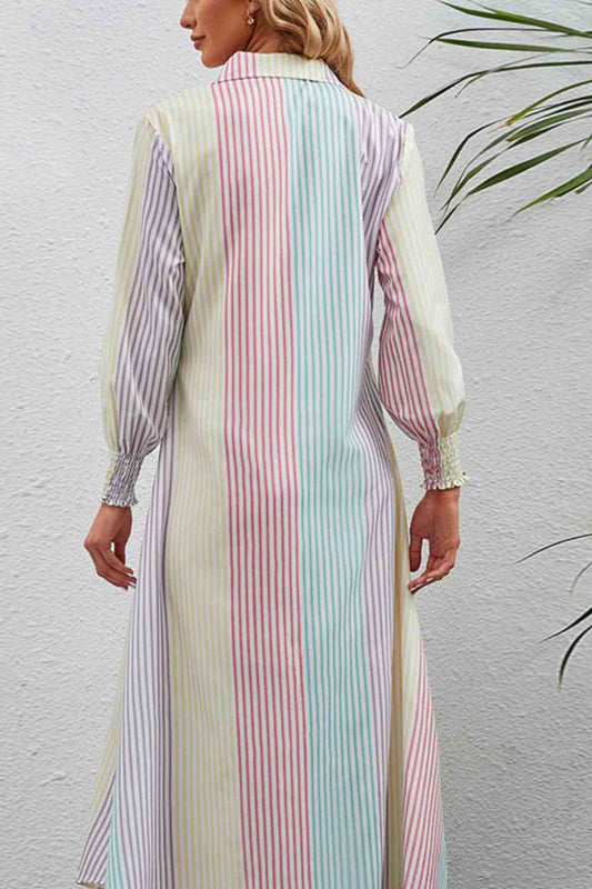 Rainbow Stripe Button-Up Maxi Shirt Dress