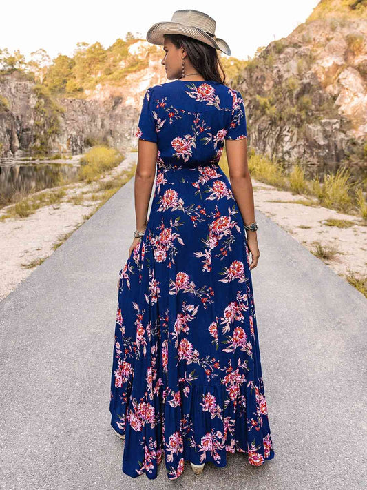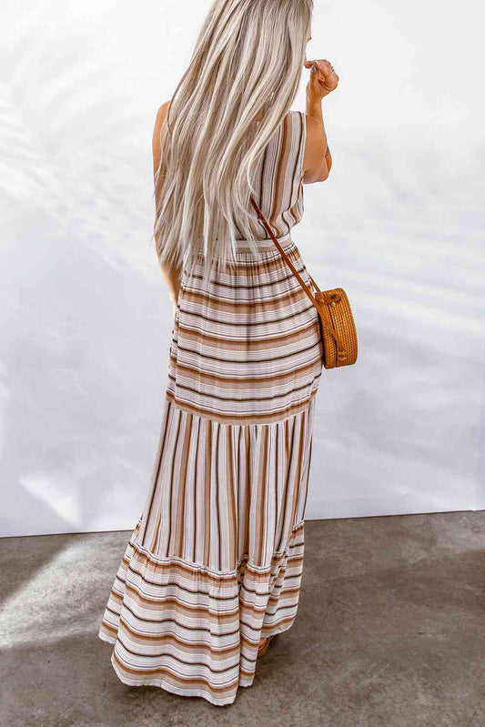 Printed Straight Neck Sleeveless Split Maxi Dress