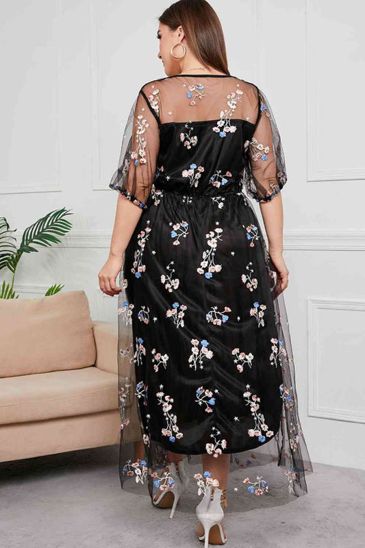 Plus Size Layered Mesh Round Neck Maxi Dress
