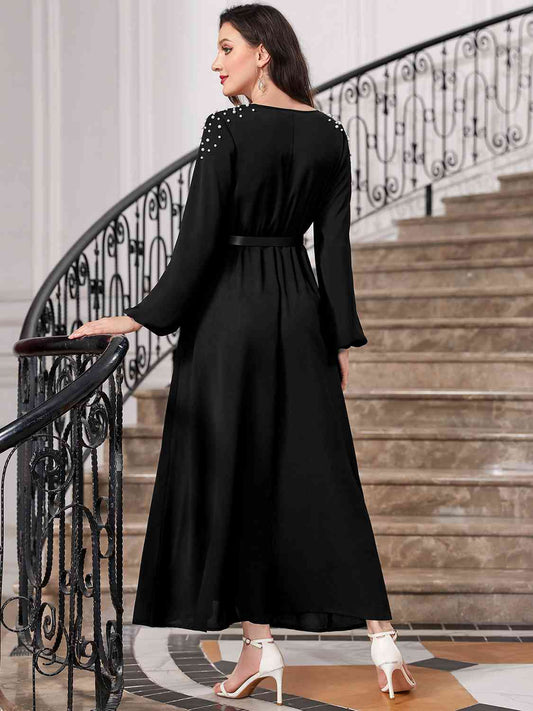 Sold outPlunge Neck Tie Sleeve Maxi Dress