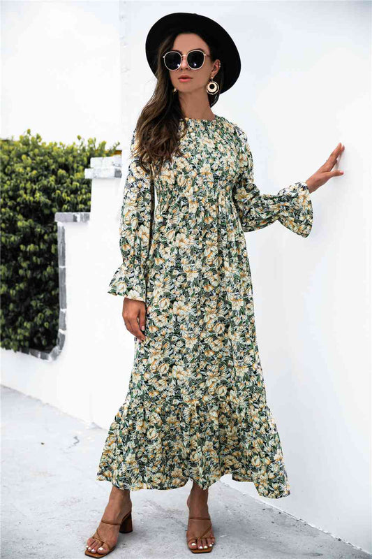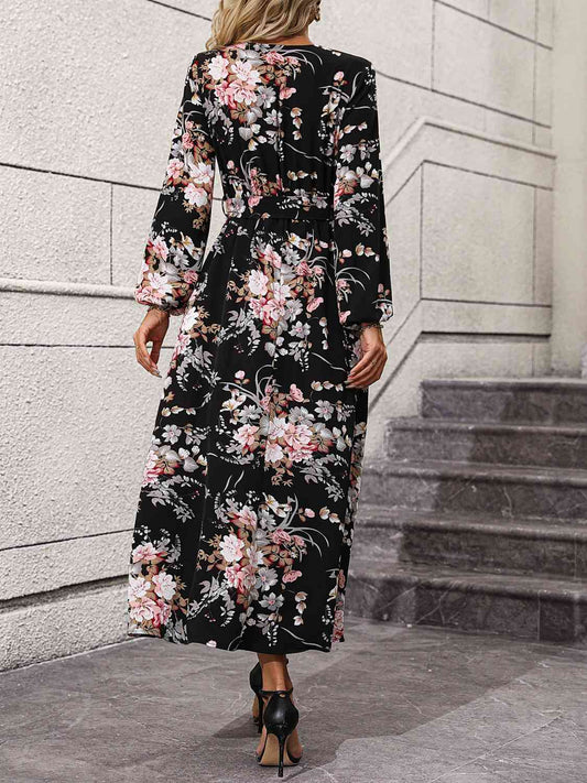 Somcked Floral V-Neck Long Sleeve Dress