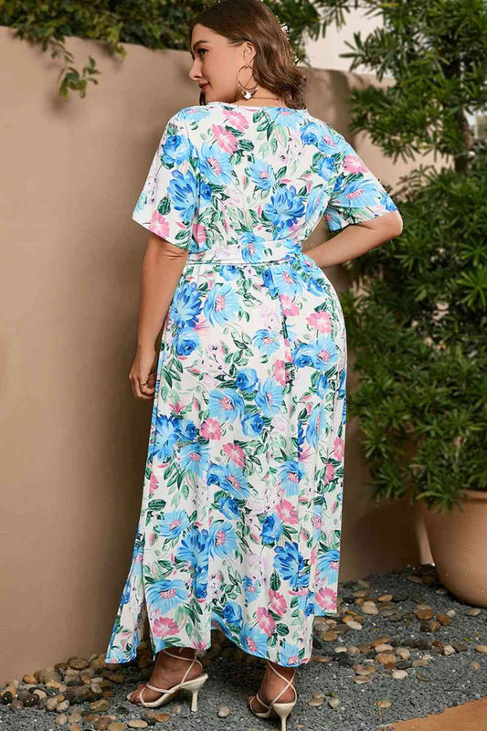 Plus Size Tied Surplice Short Sleeve Maxi Dress