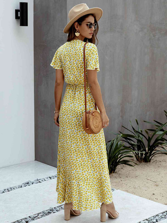 Floral Tied Flutter Sleeve Surplice Dress